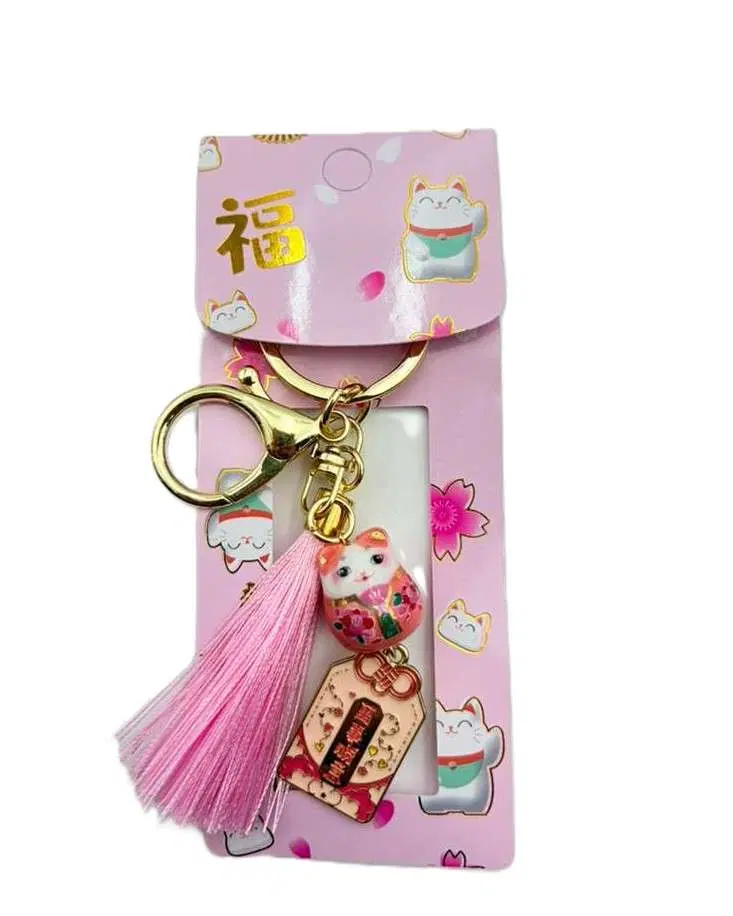 Lucky Cat Green Keychain with Tassel