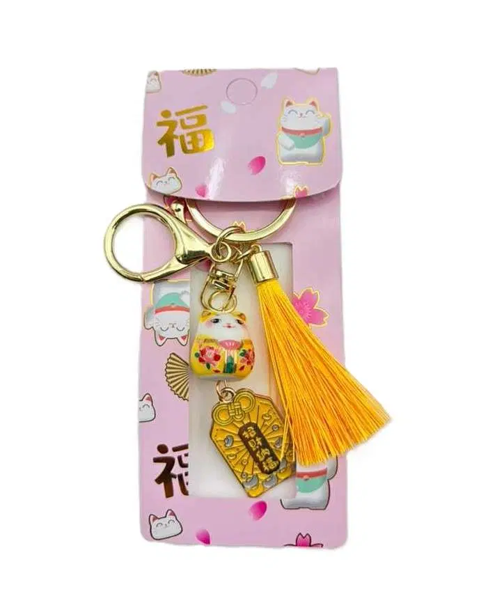 Lucky Cat Green Keychain with Tassel
