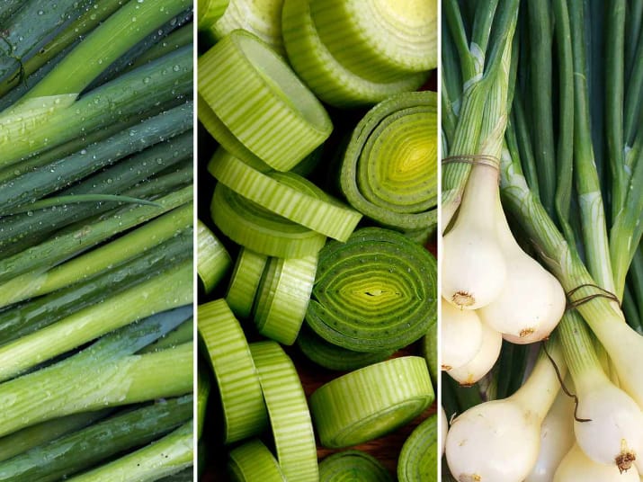 Go for spring onions with firm, unblemished bulbs and bright green, perky leaves.